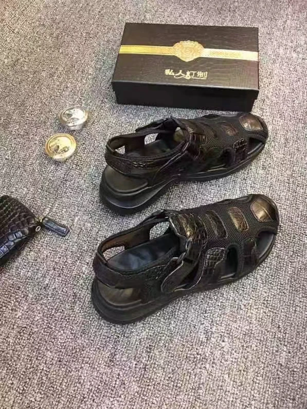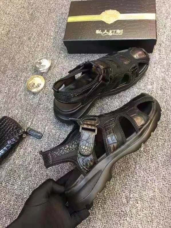 100% Genuine real crocodile skin men summer sandal shoe durable solid crocodile skin men beach shoe