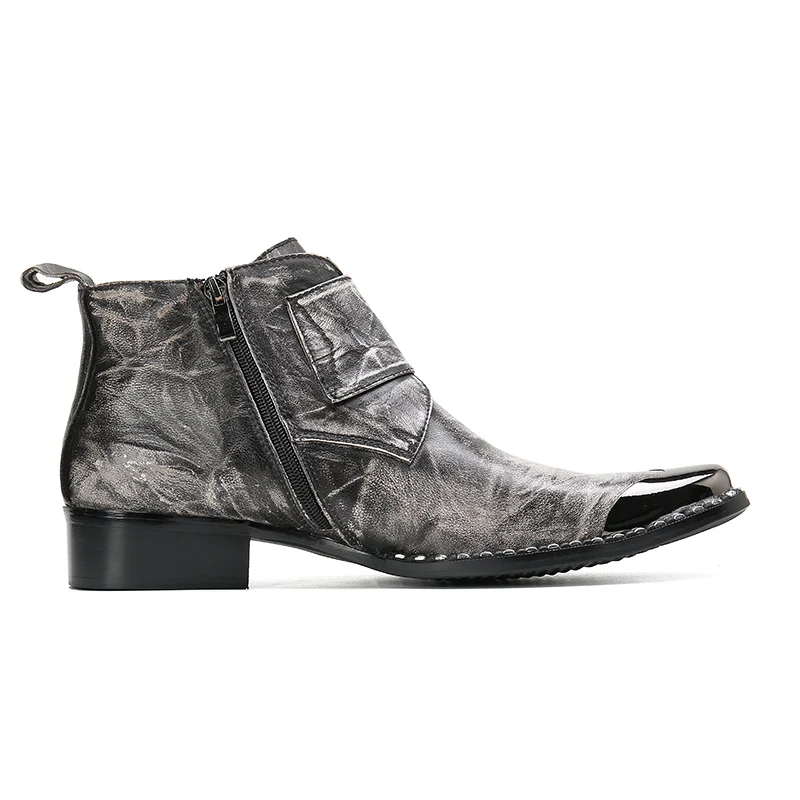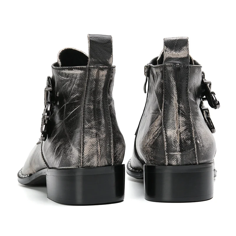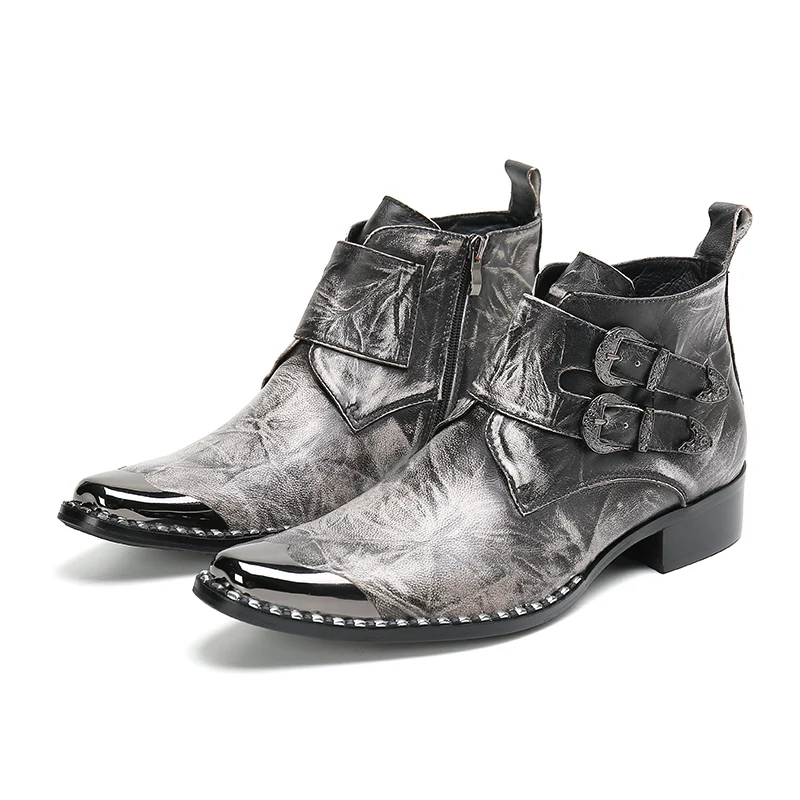 Autumn Winter Shoes Men Genuine Leather Retro Color Man Ankle Boots Double Buckle Dress Party Cowboy Boots Metal Botas Hombre