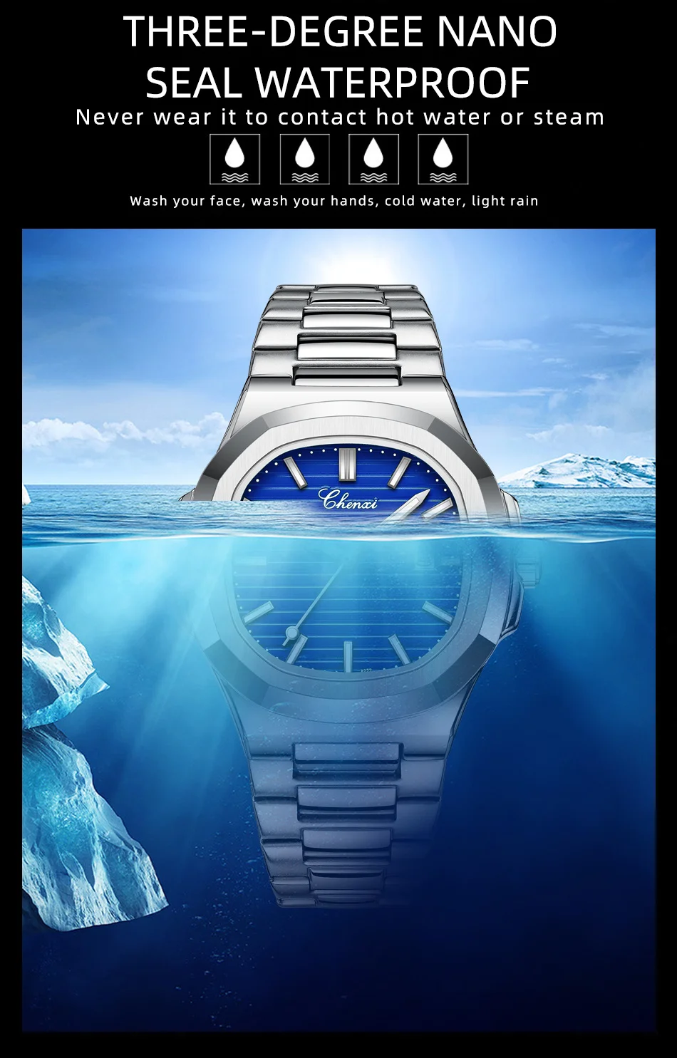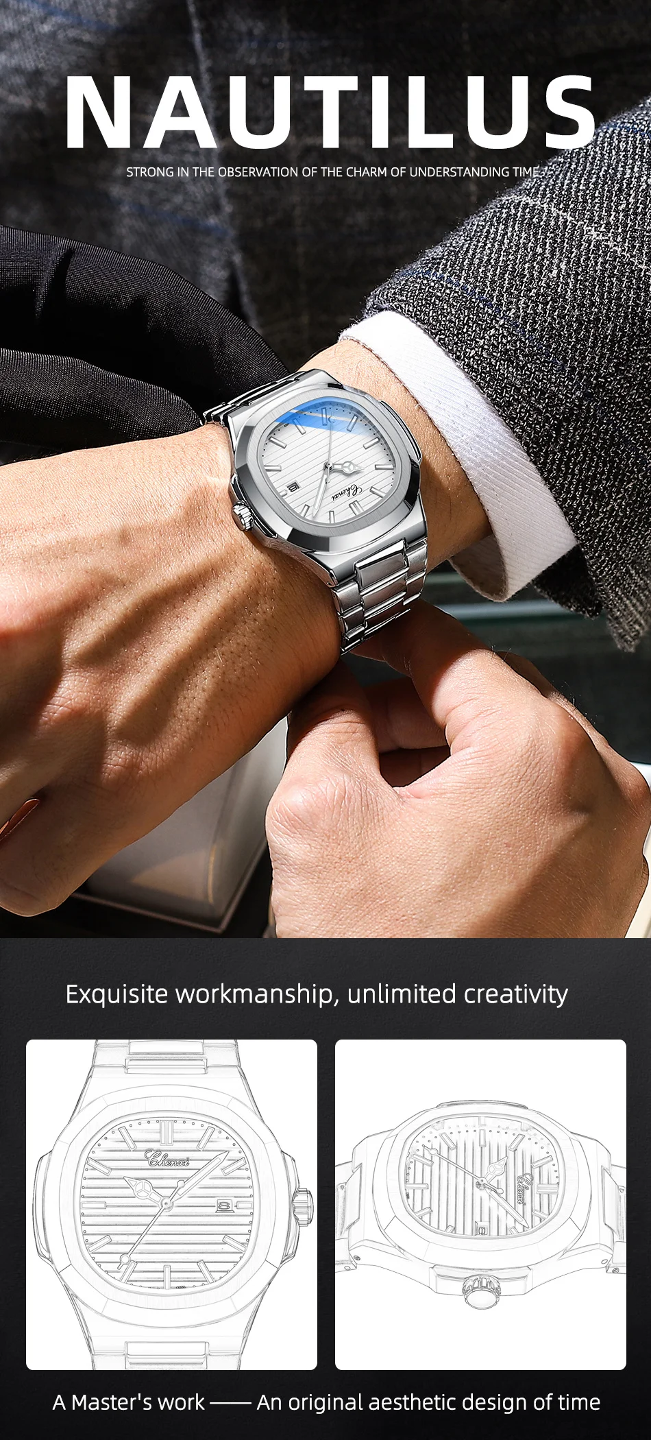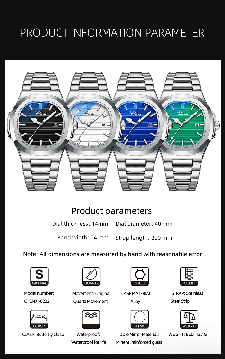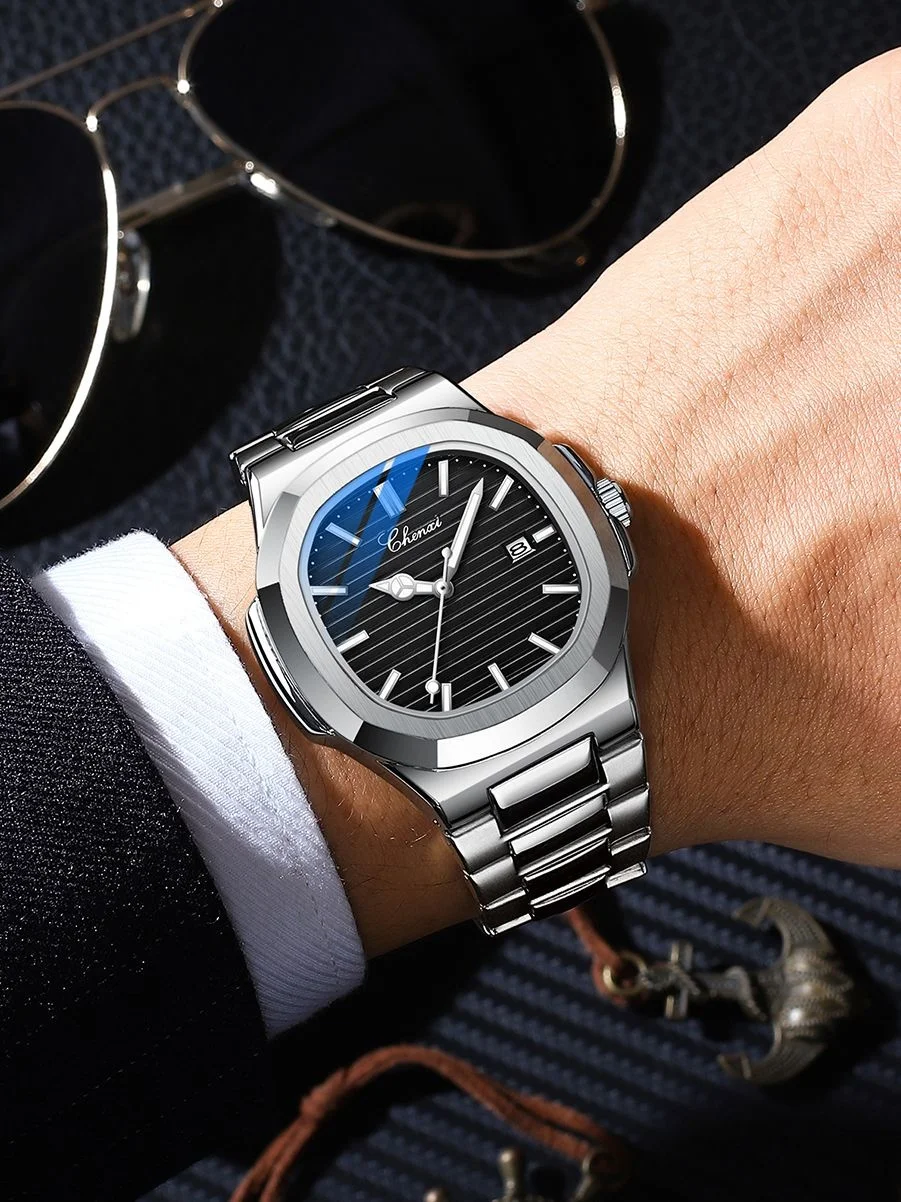 CHENXI 8222 Stainless Steel Wristwatch Case Fashion Calendar Quartz Waterproof Luminous Man Watches Reloj Hombre