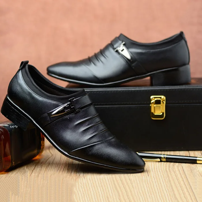 Men PU Leather Shoes Formal Comfortable Flat Pointed Toe Casual Shoes XIN-Shipping