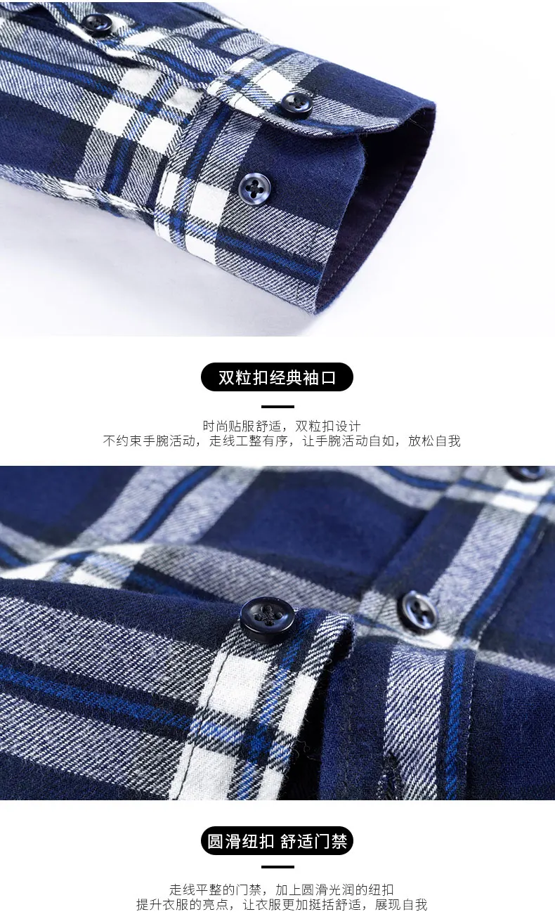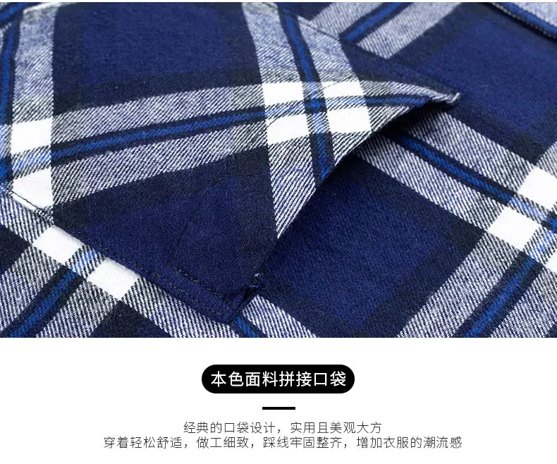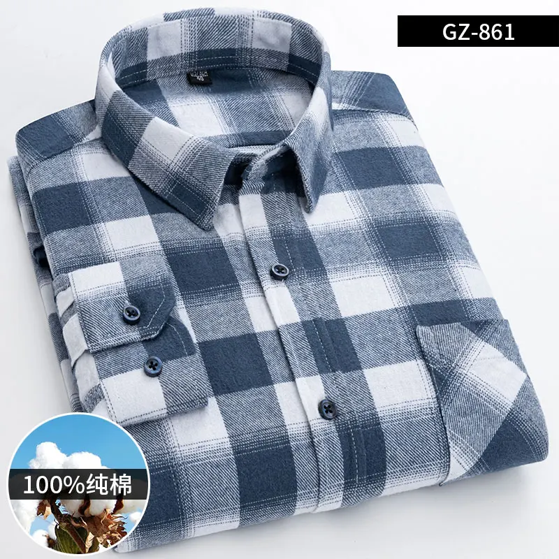 Men's Fashion 100% Cotton Thick Brushed Flannel Shirts Single Patch Pocket Long Sleeve Standard-fit Plaid Checkered Casual Shirt