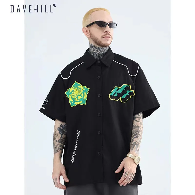 original American retro embroidery high sense fried Street casual shirt men's and women's high Street hip camisas feminina