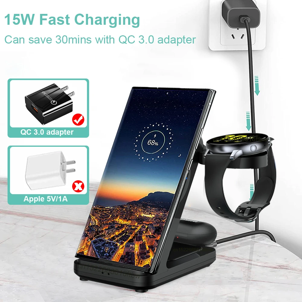 Wireless Chargers 3 in 1 For Galaxy Watch 5/5 Pro 15W Qi Fast Charging Station For Samsung Galaxy Watch 4/S22/S21 Charger Stand